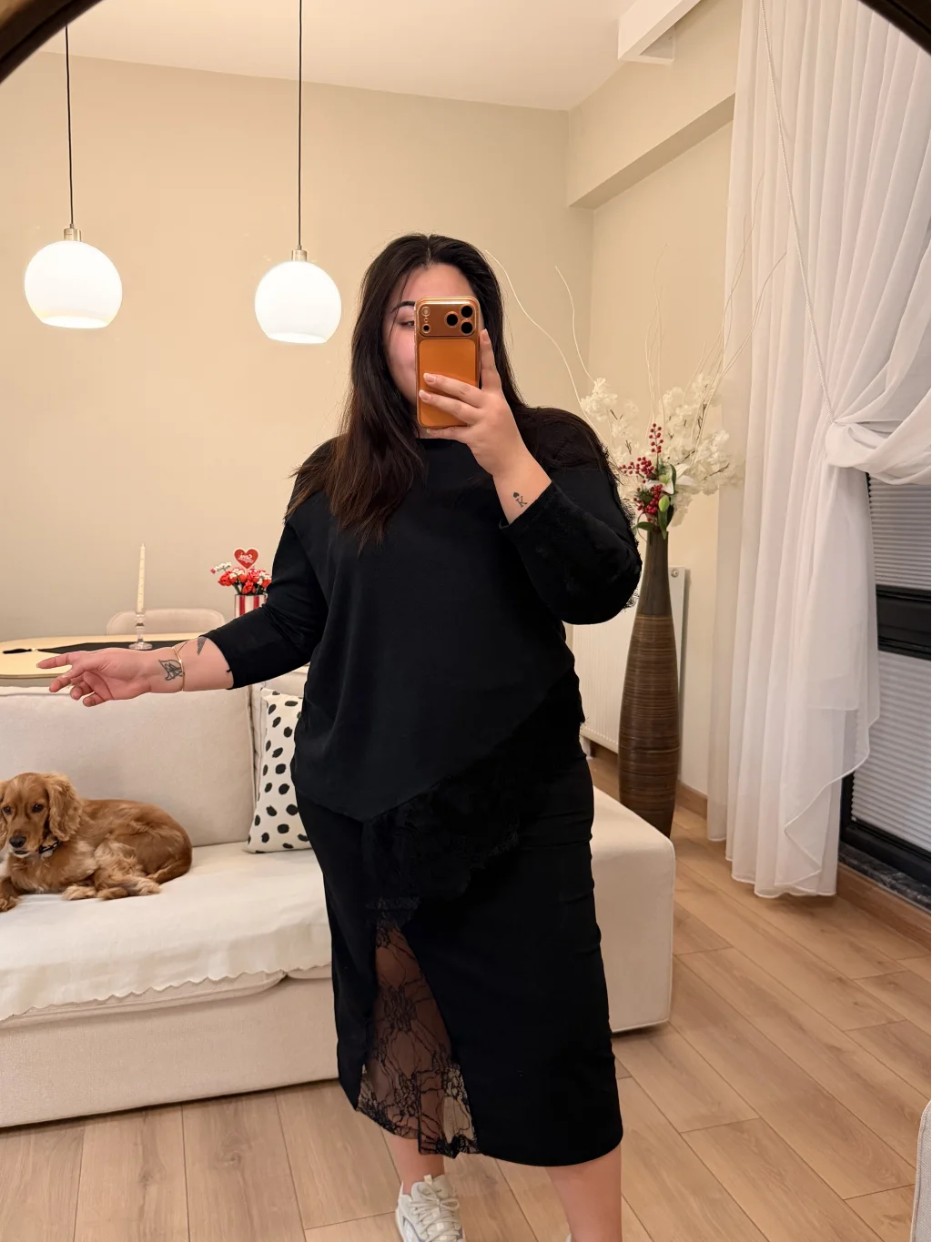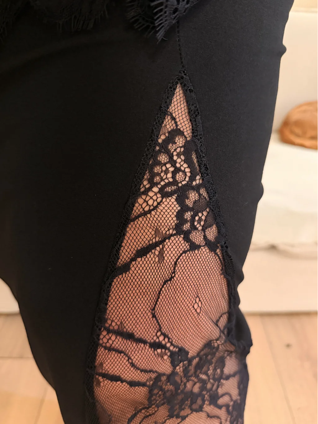 Dantel Detaylı, Krep Kumaş,Yırtmaçlı, Esnek, Tam Kalıp