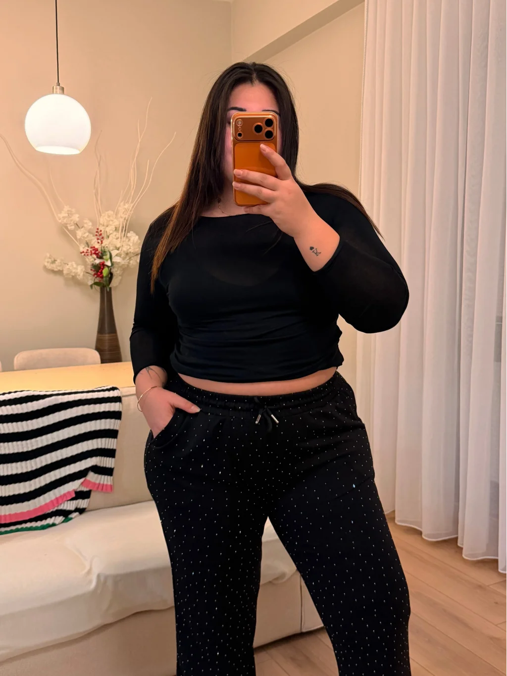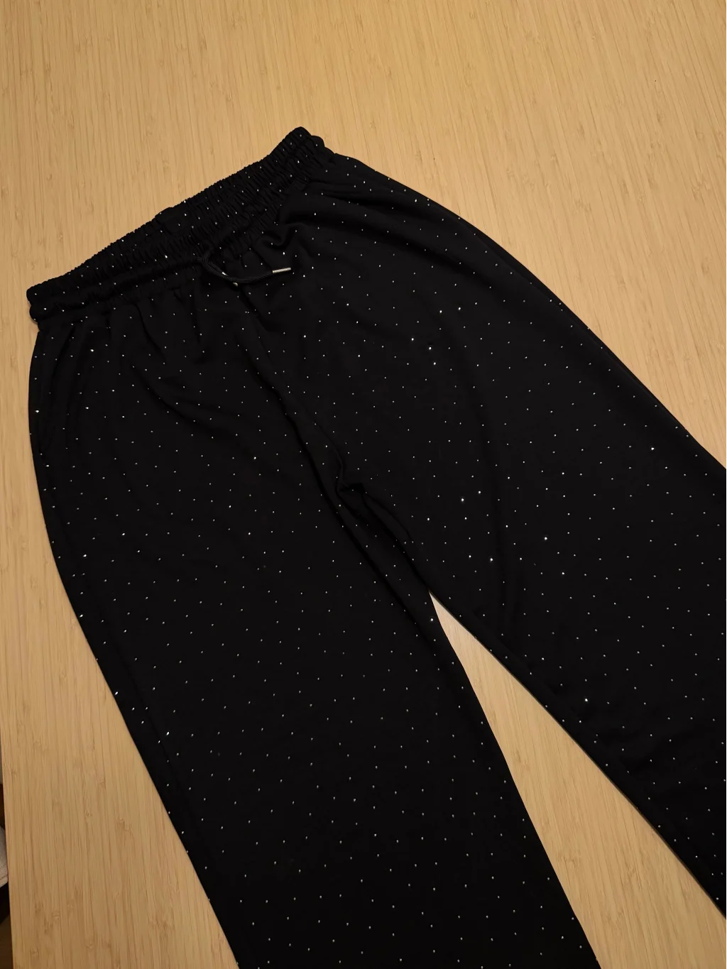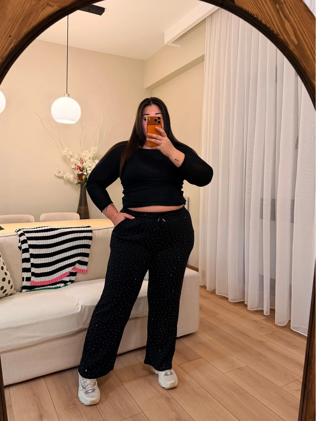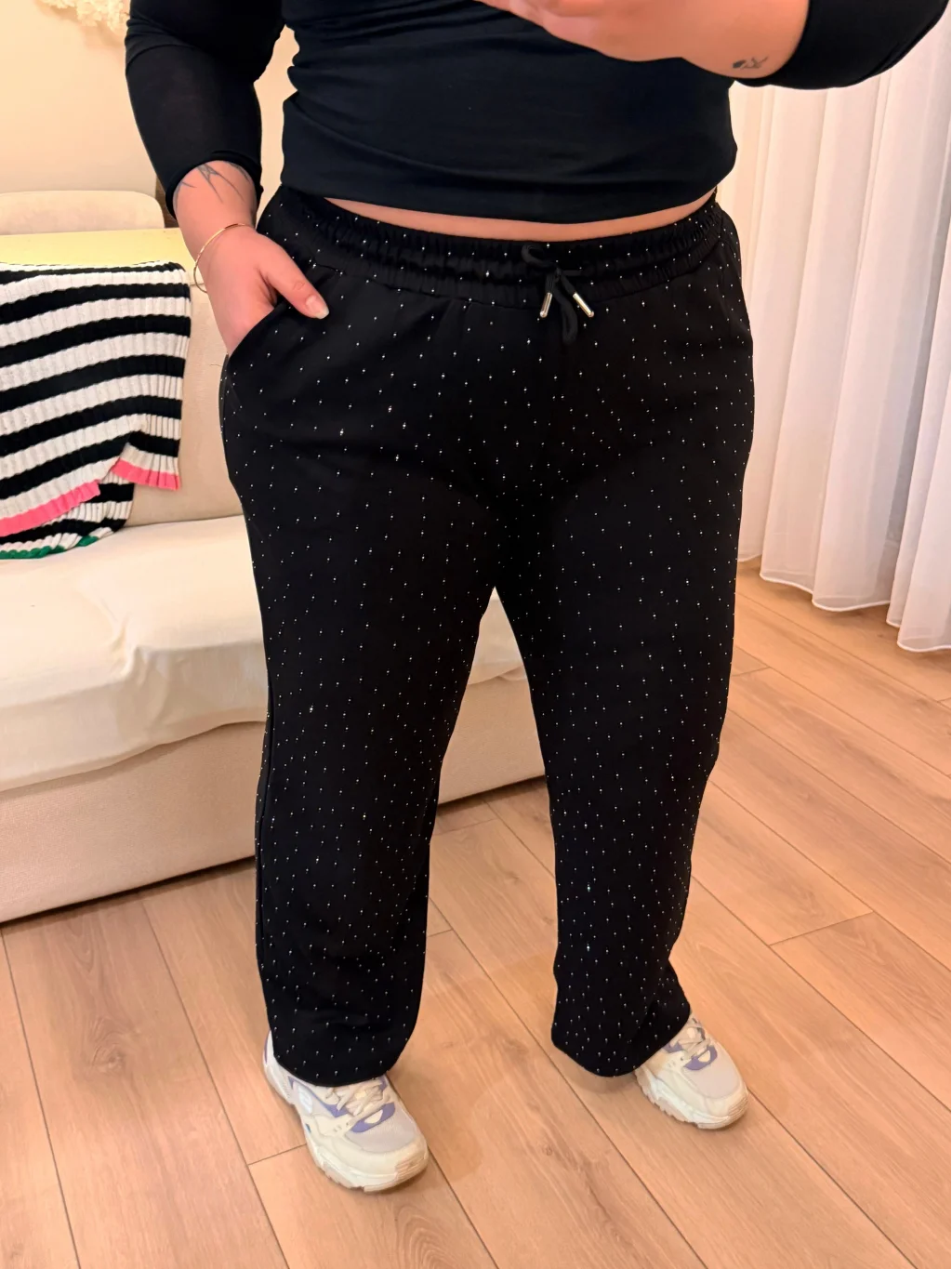 Boru Paça, Taş Detaylı, Yüksek Bel, Geniş Kalıp Modal Eşofman Altı